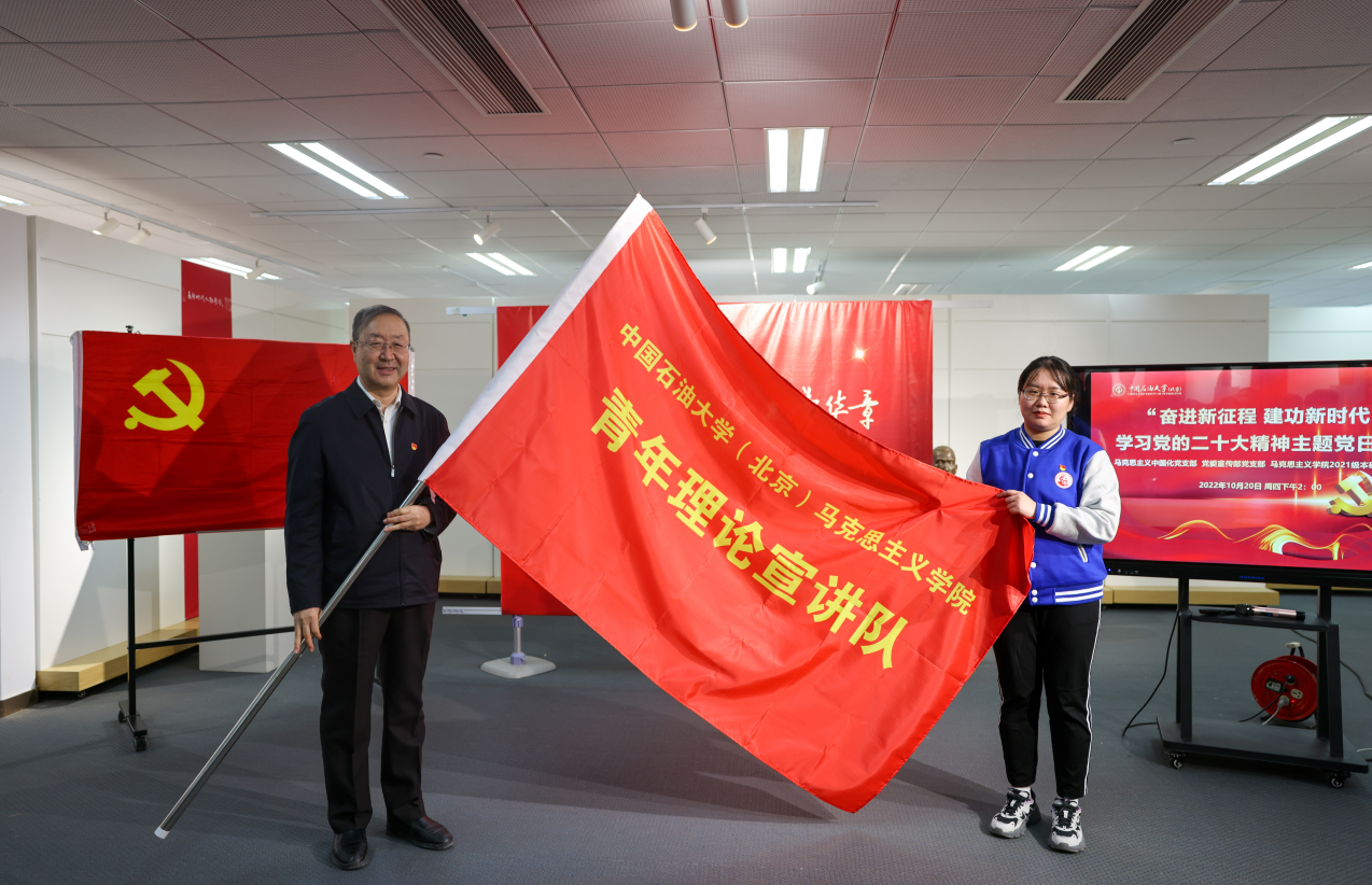 會上,陳峰為馬克思主義學院青年理論宣講隊授旗。宣講隊將以習近平新時代中國特色社會主義思想為指導,把握正確導向,扎扎實實備課,深入開展宣講,以實際行動宣傳好黨的二十大精神。