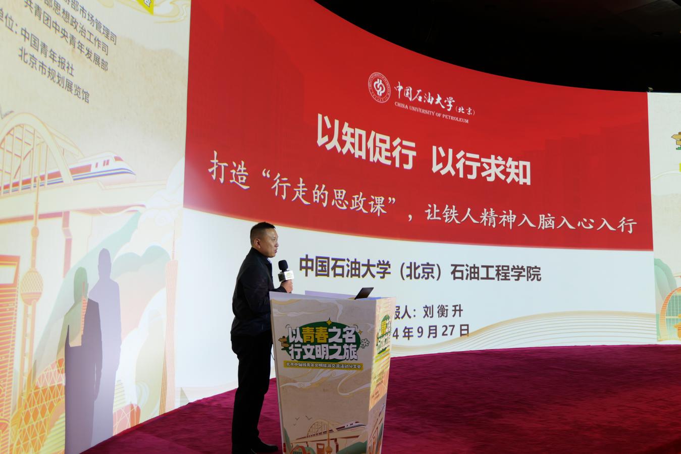 近日,由文化和旅游部市場管理司、教育部思想政治工作司、團中央青年發展部主辦,中國青年報社、北京市規劃展覽館承辦的“以青春之名 行文明之旅——青年行走北京中軸線文明旅游交流活動”在北京市規劃展覽館舉辦。受主辦方邀請,中國石油大學(北京)“鐵人精神訓練營”參加活動并作主題分享。